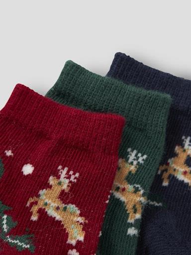Otroške unisex nogavice, z božičnimi motivi, 3 pari v pakiranju. Material: 70% ekološki bombaž, 25% poliamid, 5% elastan; 2,99€/par