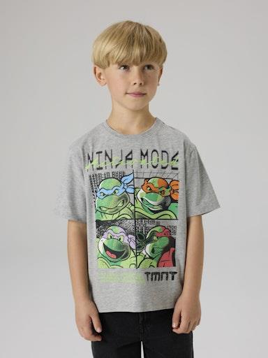 Otroška fantovska majica s kul licenčnim potiskom prlibljenih Ninja želv, s potiskom spredaj, rahlo širši in krajši kroj, kratek rokav. Material: 95% ekološki bombaž, 5% elastan