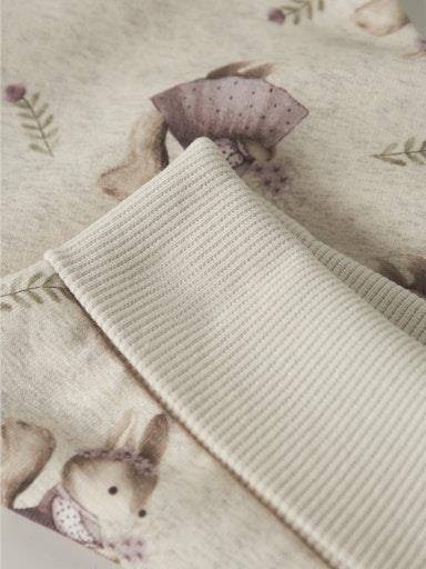 Otroške dekliške hlače iz prijetnega ekološkega bombaža, z all over prikupnim vzorcem, s široko in mehko rebrasto elastiko v pasu in na dnu hlačnic, kosmaten material, regular kroj. Material: 95% ekološki bombaž, 5% elastan