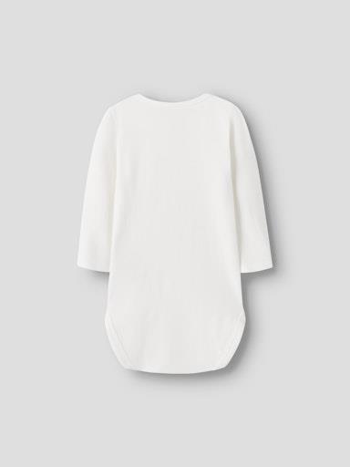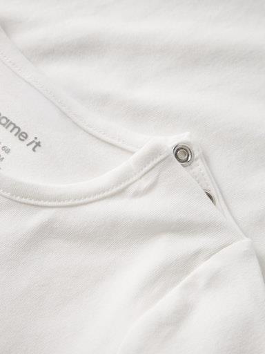 Otroški dekliški body z mehkim potiskom spredaj, rahlo nabran na ramenih, zapenjanje na rami s skritimi pritiskači, dolg rokav. Material: 95% ekološki bombaž, 5% elastan