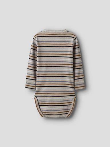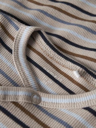 Otroški fantovski body na preklop iz prijetnega in udobnega rebrastega materiala, z modni večbarvni kombinaciji z all over črtastim vzorcem, regular kroj, dolg rokav. Material: 95% ekološki bombaž, 5% elastan