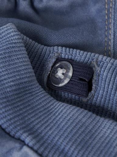 Otroške dekliške modne in zelo udobne jeans kratke hlače, z elastiko v pasu in mehko elastiko na hlačnicah, z dvema žepoma spredaj, nastavljiva širina pasu, baggy kroj. Material: 57% TENCEL™ liocel, 31% recikliran poliester, 10% viscose, 2% elastan