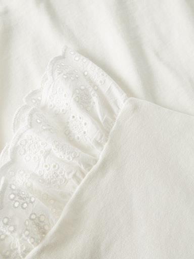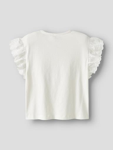 Otroška dekliška modna majica iz prijetnega ekološkega bombaža, z luknjičastim vzorcem in volančki na rokavih, rahlo širši kroj, kratek roakv. Material: 100% ekološki bombaž