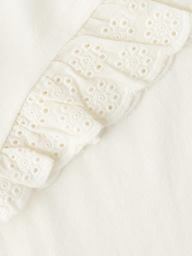 Otroška dekliška modna obleka iz prijetnega in udobnega ekološkega bombaža, z elastiko v pasu, z volančki in luknjičastim vzorcem na rokavih, rahlo širši kroj, kratek rokav. Material: 100% ekološki bombaž