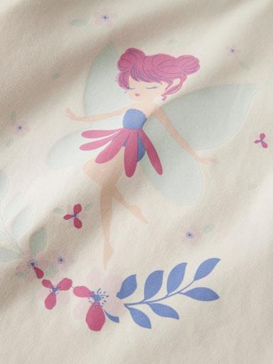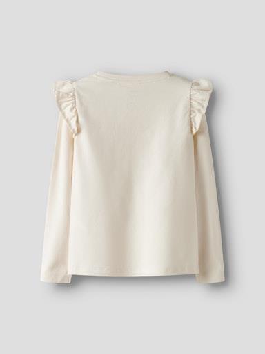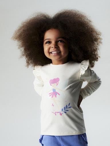 Otroška dekliška modna majica, s prikupnim potiskom spredaj, z volančki na ramenih, regular kroj, dolg rokav. Material: 95% bombaž, 5% elastan