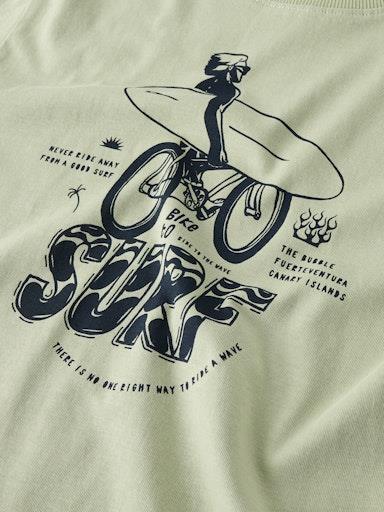 Otroška fantovska majica s potiskom spredaj in zadaj, iz prijetnega ekološkega bombaža, rahlo širši in krajši kroj, kratek rokav. Material: 100% ekološki bombaž