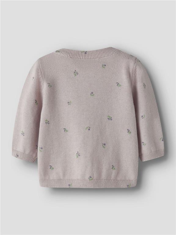 Otroška dekliška modna pletena jopa, s prikupnim all over vzorcem, iz fine in mehke pletenine, z mehkim rebrastim patentom na zaključkih, zapenjanje na gumbe, regular kroj, dolg rokav. Material: 100% ekološki bombaž