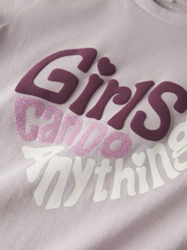 Otroška dekliška majica iz prijetnega bombaža, s potiskom spredaj, regular kroj, kratek rokav. Material: 80% ekološki bombaž, 20% recikliran bombaž