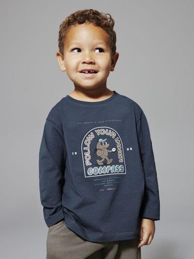 Otroška fantovska majica s kul potiskom spredaj, rahlo širši in krajši kroj, dolg rokav. Material: 100% bombaž