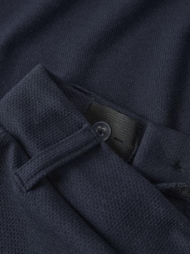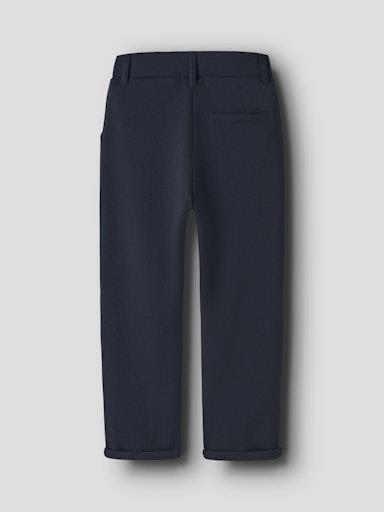 Otroške fantovske modne in udobne hlače elegantnega videza, iz prijetnega strukturiranega materiala, z dekorativnim gumbom in zankami za pas, z dvema stranskima žepoma in žepom zadaj, z dekorativnim našitkom zadaj, nastavljiva širina pasu. Material: 65% recikliran poliester, 28% viskoza, 7% elastan