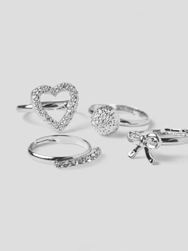Otroški dekliški prstani različnih oblik, univerzalne velikosti. 4 kosi v pakiranju. Material: 70% cink, 30% plastika; 2,75€/kos