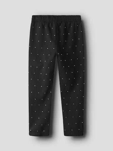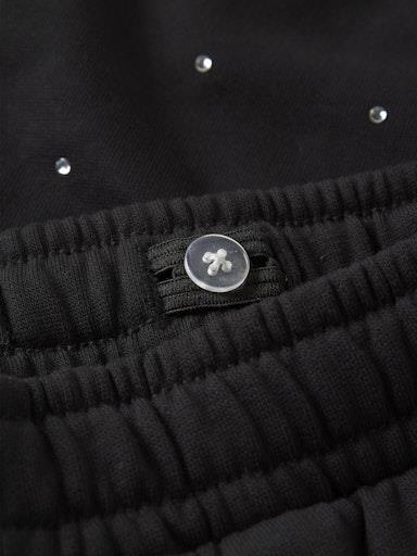 Otroška dekliške modne in elegantne hlače iz prijetnega ekološkega bombaža, z all over dekorativnimi kamenčki, z elastiko v pasu, raven kroj hlačnic, kosmaten material, nastavljiva širina pasu. Material: 100% ekološki bombaž