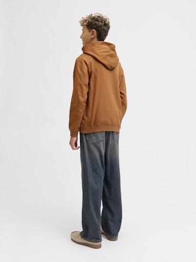 Otroški fantovski kosmaten pulover s kapuco blagovne znamke JACK & JONES JUNIOR, s kenguru žepom spredaj, s patentom na zaključkih, dolg rokav. Material: 89% bombaž, 11% recikliran poliester