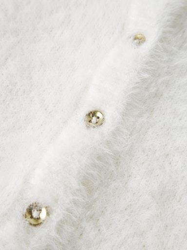 Otroška dekliška modna in udobna krajša jopa iz fine pletenine puhastega videza, zapenjanje na gumbe, dolg rokav. Material: 62% najlon, 38% akril