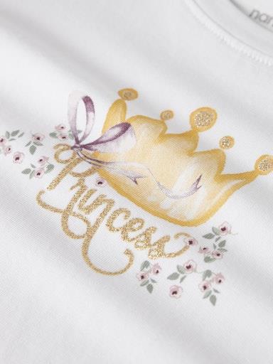Otroška dekliška majica iz prijetnega ekološkega bombaža, s prikupnim potiskom spredaj, z bleščičastimi detajli, rahlo nabrana na ramenih, regular kroj, dolg rokav. Material: 95% ekološki bombaž, 5% elastan