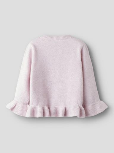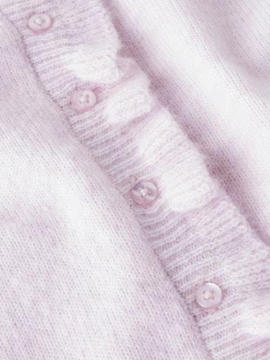 Otroška dekliška modna in udobna jopa iz fine in mehke pletenine, z volančki na zaključkih in mehkim rebrastim patentom, zapenjanje z gumbi spredaj, regular kroj, dolg rokav. Material: 50% recikliran poliester, 29% poliester, 13% akril, 5% volna, 3% elastan