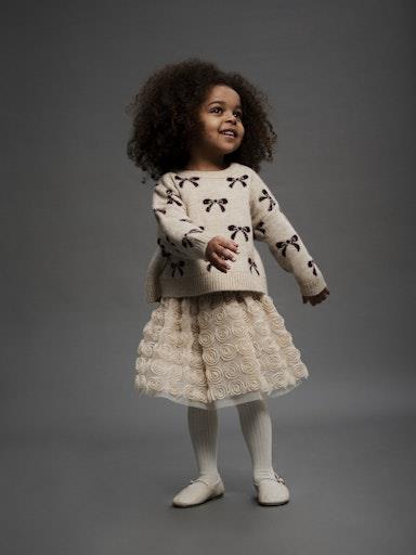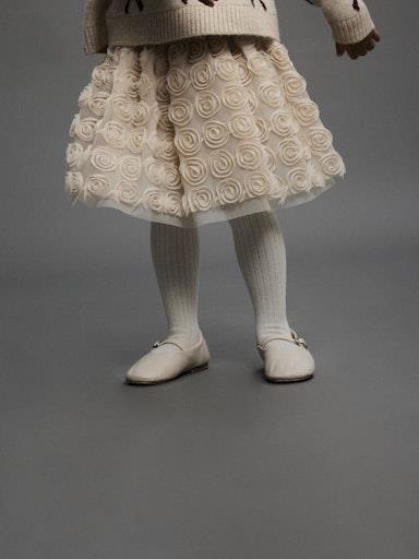 Otroško deklišiko krilo iz udobnega in mehkega tila, s 3D našitki iz tila, bogato nabrana, z mehko podlogo in elastiko v pasu, regular kroj. Material: 100% recikliran poliester