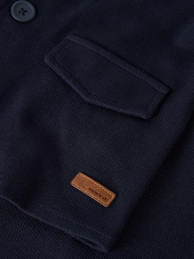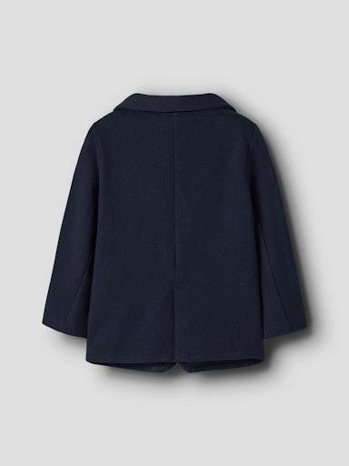 Otroški fantovski športno eleganten blazer iz prijetnega in udobnega stukturiranega materiala, s klasičnim ovratnikom, z dvema sprednjima žepoma, zapenjanje na dva gumba spredaj, z zaobljenim robom spredaj, regular kroj, dolg rokav. Material: 87% ekološki bombaž, 9% recikliran poliester, 4% elastan