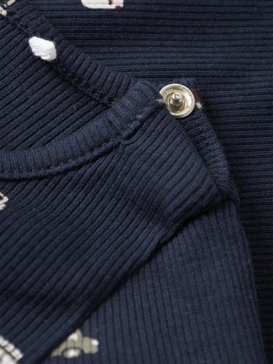 Otroški fantovski body iz prijetnega in udobnega materiala, z all over vzorcem, zapenjanje na rami s skritimi pritiskači, dolg rokav. Material: 57% ekološki bombaž, 38% liocel TENCEL™, 5% elastan