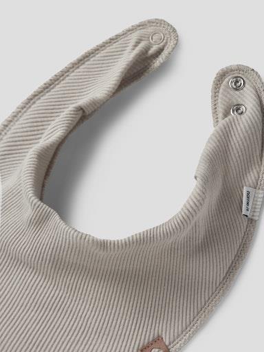 Zelo praktičen, večnamenski otroški slinček/dekorativna rutica, podložen z mehkim flisom, ki preprečuje, da bi mokrota hitro prešla na majico. Iz mehkega rebrastega, strukturiranega materiala. Lahko ga uporabite tudi pri večjih malčkih kot dekoracijo oz. zaščito vratu pred mrazom. Zapiranje s pritiskačem, možnost nastavitve dveh obsegov. Material: zgoraj: 100% ekološki bombaž; spodaj: 100% poliester