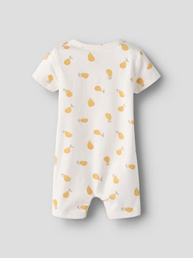 Otroški unisex poletni pajac iz mehkega in udobnega bombaža, z all over potiskom, z mehko elastiko na hlačnicah, s pritiskači v razkoraku - za lažje previjanje, zapenjanje na rami s skritimi pritiskači, kratek rokav in kratke hlače. Material: 95% ekološki bombaž, 5% elastan