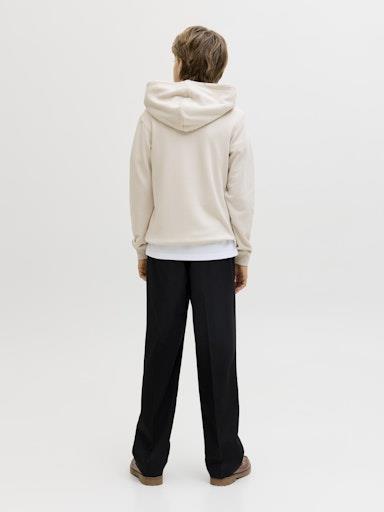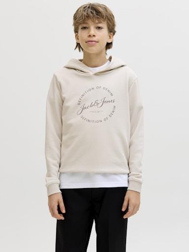 Otroški fantovski moden in udoben pulover s kapuco blagovne znamke JACK & JONES JUNIOR, kosmaten material, z logotiopm spredaj, s patentom na zaključkih, dolg rokav. Material: 65% recikliran poliester, 35% bombaž