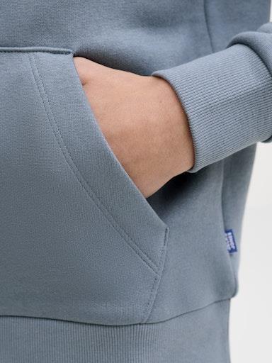 Otroški fantovski moden in udoben pulover s kapuco blagovne znamke JACK & JONES JUNIOR, rahlo kosmaten material, z logotiopm spredaj, s patentom na zaključkih, "kenguru" žep spredaj, dolg rokav. Material: 70% bombaž, 30% poliester