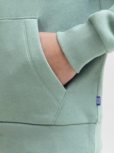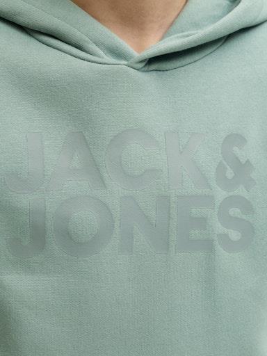 Otroški fantovski moden in udoben pulover s kapuco blagovne znamke JACK & JONES JUNIOR, rahlo kosmaten material, z logotiopm spredaj, s patentom na zaključkih, "kenguru" žep spredaj, dolg rokav. Material: 70% bombaž, 30% poliester