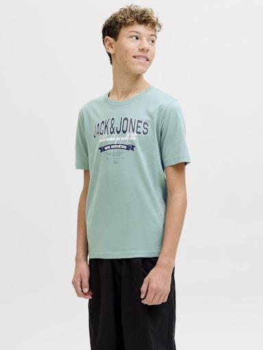 Otroška fantovska modna majica blagovne znamke JACK & JONES JUNIOR iz mehkega jersey-a, z mehkim potiskom spredaj, udoben in prijeten kroj za nošenje, kratek rokav. Material: 100% bombaž