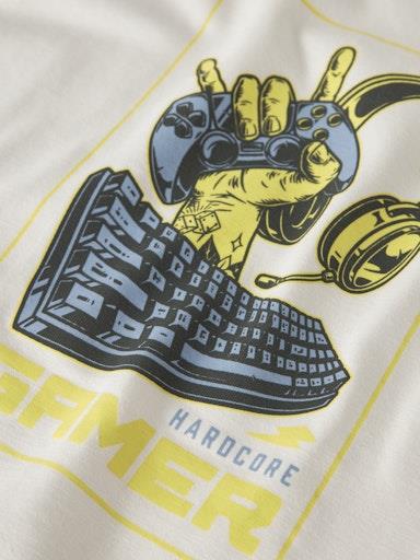 Otroška fantovska mehka in udobna majica z dekorativnim potiskom, z zavihki na rokavih, regular kroj, kratek rokav. Material: 95% bombaž, 5% elastan