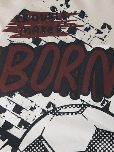 Otroška fantovska modna majica s potiskom spredaj, rahlo širši in krajši kroj, dolg rokav. Material: 100% bombaž