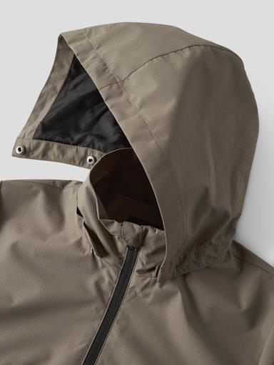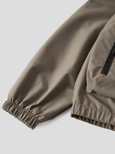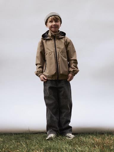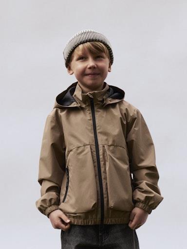 Otroška fantovska prehodna jakna (vetrovka), z odstranljivo kapuco, z elastiko na zaključkih, z dvema žepoma z zapenjanjem na zadrgo spredaj, zapenjanje na zadrgo. Material: 100% poliester