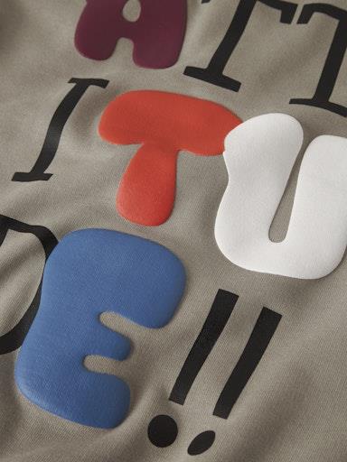 Otroška fantovska modna jopa s kapuco iz prijetnega ekološkega bombaža, s potiskom spredaj in zadaj, z rahlo spuščenimi rameni, zapenjanje z zadrgo spredaj, kosmaten material, rahlo širši in krajši kroj, dolg rokav. Material: 100% ekološki bombaž