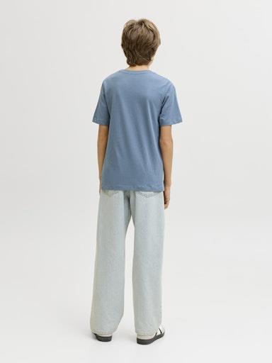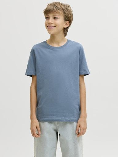 Otroška fantovska basic majica blagovne znamke JACK & JONES JUNIOR, z našitim logotipom spodaj, regular kroj, iz mehkega in prijetnega ekološkega bombaža, kratek rokav. Material: 100% ekološki bombaž