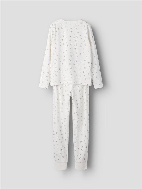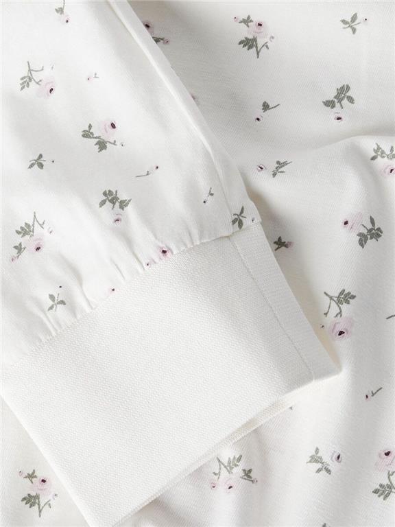 Otroška dekliška pižama iz mehkega bombaža, z all over potiskom na zgornjem in spodnjem delu, dolg rokav, hlače z elastiko v pasu, s patentom na dnu hlačnic. V lični embalaži. Material: 95% ekološki bombaž, 5% elastan