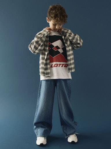 Otroška dekliške modne jeans hlače, s 5 žepi in zankami za pas, s širokimi hlačnicami, spranega videza, nastavljiva širina pasu, baggy kroj. Material: 80% bombaž, 20%recikliran bombaž