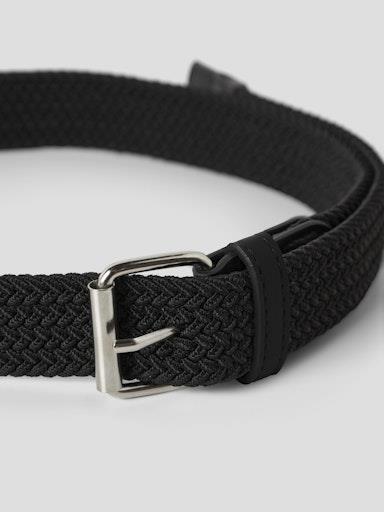Otroški fantovski pas iz pletenega mehkega materiala, s kovinsko zaponko in detajli iz usnja. Material: 62% polipropilen, 25% poliuretan, 13% elastodin. Velikosti: 55 = 5-7let (55 cm), 65 = 7-9 let (65 cm), 75 = 9-12 let (75 cm)