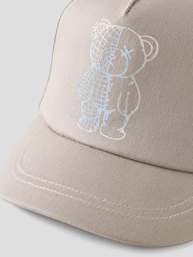 Otroška fantovska kapa s šiltom, s potiskom spredaj, nastavljiva širina zadaj. Material: 100% bombaž. Velikosti: 47/48: 1-1,5 let, 49/50: 2-3 leta, 51/52: 4-5 let