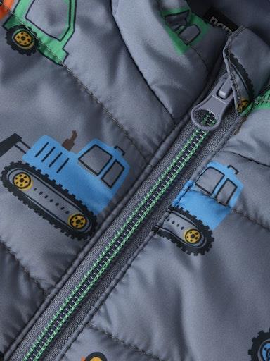 Otroški fantovski mehak prešit brezrokavnik z all over vzorcem , z visokim ovratnikom in 2 stranskima žepoma. Zapenjanje z zadrgo. Material: 100% recikliran poliester
