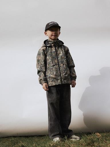 Otroška fantovska prehodna jakna (vetrovka), z odstranljivo kapuco, z elastiko na zaključkih, z dvema žepoma z zapenjanjem na zadrgo spredaj, z all over vzorcem, zapenjanje na zadrgo. Material: 100% poliester