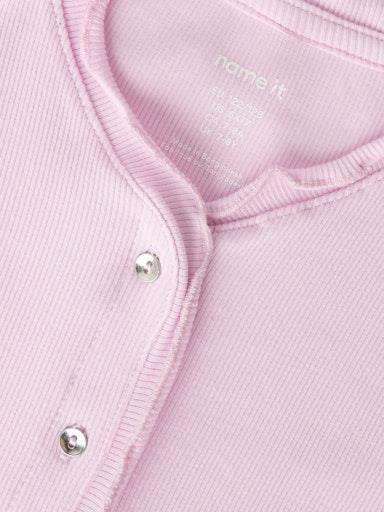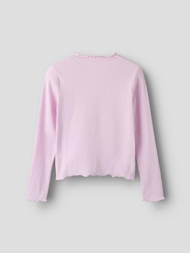 Otroška dekliška modna majica iz prijetnega in udobnega strukturiranega materiala, z valovitimi zaključki, z gumbi spredaj, krajši in slim kroj, dolg rokav. Material: 95% ekološki bombaž, 5% elastan