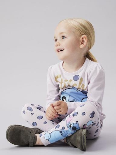 Otroška dekliška majica s prikupnim licenčnim potiskom priljubljenega Stitch-a, z bleščičastimi detajli, regular kroj, dolg rokav. Material: 95% bombaž, 5% elastan
