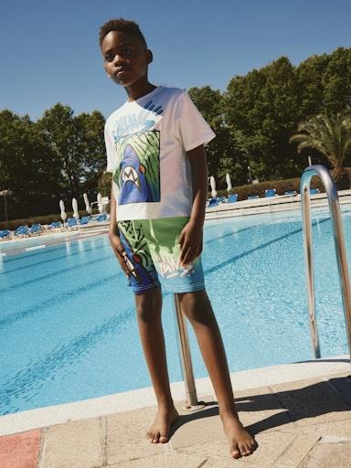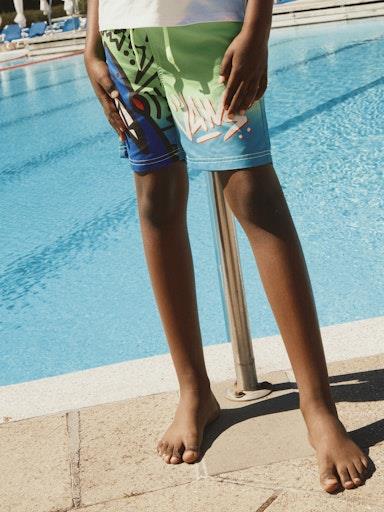 Otroške fantovske kul kopalke kratke hlače z all over potiskom priljubljene igrice Minecraft, v modni večbarvni kombinaciji, z elastiko in vrvico v pasu, nastavljiva širina pasu, regular kroj. Material: 100% poliester