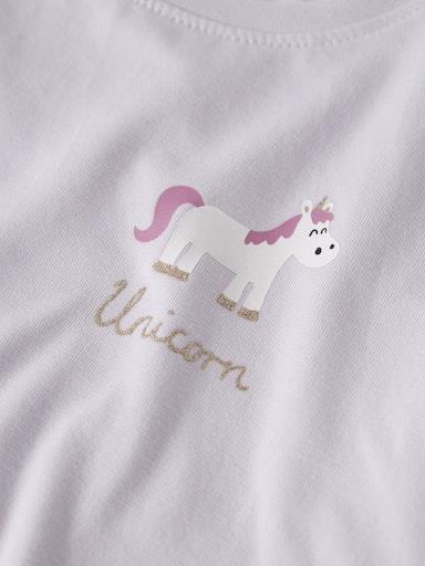Otroška dekliška majica z dekorativnim potiskom, iz mehkega in prijetnega bombaža, z zavihki na rokavih, regular kroj, kratek rokav. Material: 95% ekološki bombaž, 5% elastan