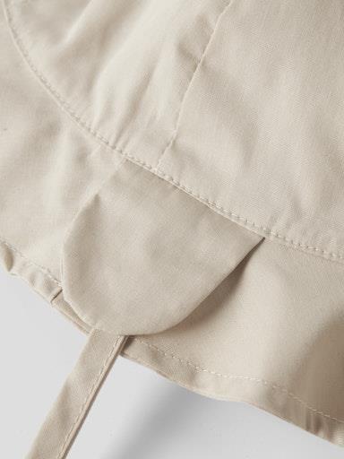 Otroški unisex poletni klobuček s trakom za zavezovanje, s podaljškom za zaščito vratu in tilnika pred sončnimi žarki, z UV zaščito pred sončnimi žarki (UPF 50+, ustreza standardom BS 8466 in EN13758-2). Material: 100% bombaž. Velikosti: 34/39: 0-2 meseca, 40/44: 2-6 mesecev, 45/47: 6-9 mesecev