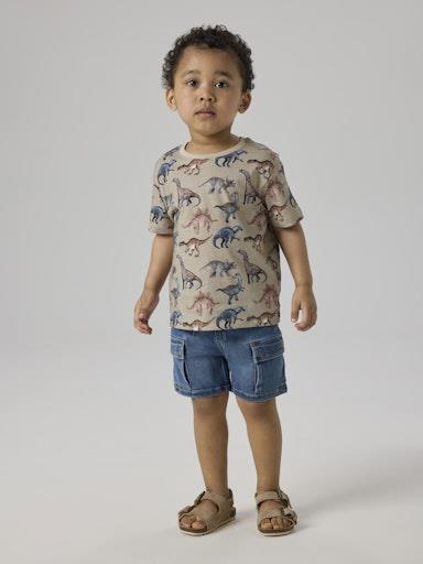 Otroške fantovske modne in izjemno udobne jeans kratke hlače, iz zelo raztegljivega in lahkega materiala, z elastiko in vrvico v pasu, z zankami za pas, z dvema cargo in dvema sprednjima žepoma, z dekorativnim našitkom, z udobnim rebrastim patentom v pasu, nastavljiva širina pasu, baggy kroj. Material: 57% TENCEL™ liocel, 31% recikliran poliester, 10% viskoza, 2% elastan; vrvica: 100% bombaž