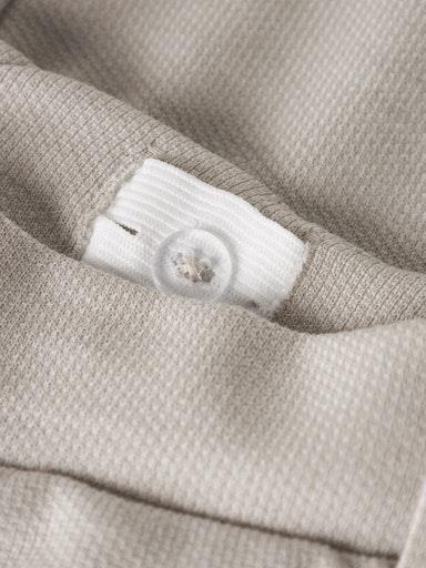 Otroške fantovske modne in udobne hlače elegantnega videza, iz prijetnega strukturiranega materiala, z dekorativnim gumbom in zankami za pas, z dvema stranskima žepoma in žepom zadaj, z dekorativnim našitkom zadaj, nastavljiva širina pasu. Material: 72% recikliran poliester, 24% viskoza, 4% elastan