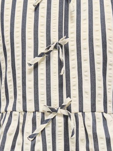 Otroška modna dekliška bluza blagovne znamke KIDS ONLY, z all over črtastim vzorcem, rahlo nabran spodnji del, z dekorativnimi pentljami spredaj, iz prijetnega in lahkega strukturiranega materiala, krajši kroj, kratek rokav. Material: 45% bombaž, 45% poliester, 10% modal
