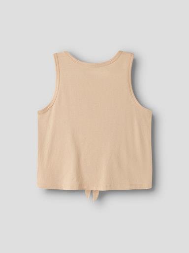 Otroška dekliška modna majica iz prijetnega ekološkega bombaža, s potiskom spredaj, spredaj povezana v vozelj, krajši in širši kroj, brez rokavov. Material: 100% ekološki bombaž