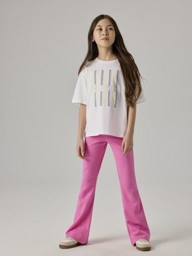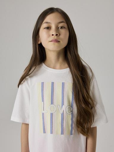 Otroška dekliška modna majica iz prijetnega ekološkega bombaža, s potiskom spredaj, širši in krajši kroj, kratek rokav. Material: 100% ekološki bombaž